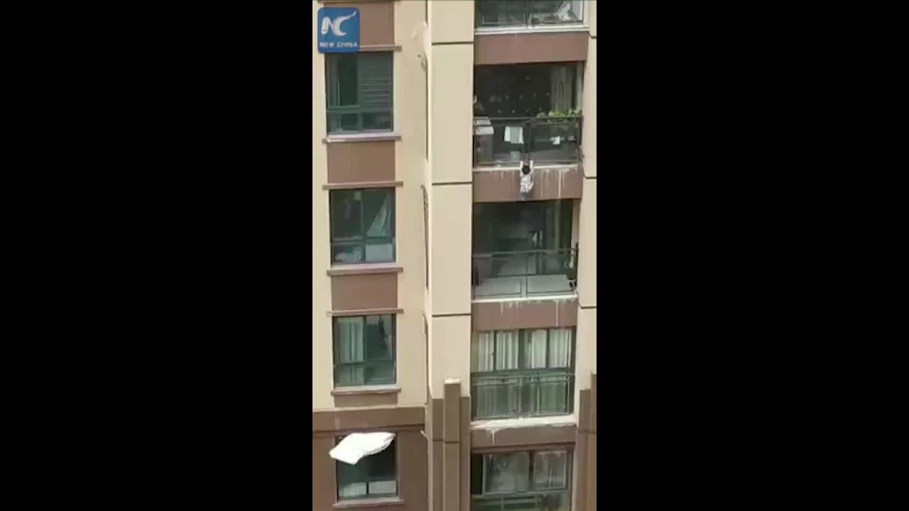 Shocking moment: 2-year-old boy falls from 6th floor in SW China and lands safely in blanket spread out by neighbors.