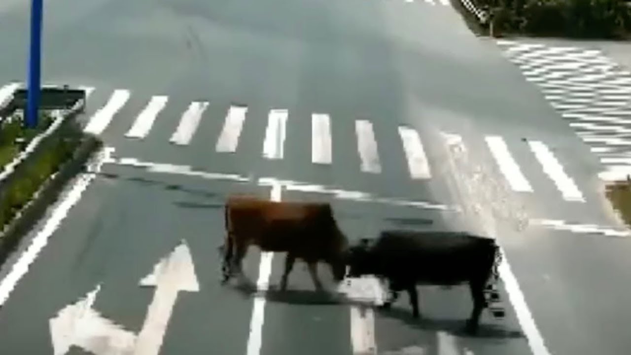 Two cows were seen fighting on a motorway in Jinhua City in east China’s Zhejiang Province on September 9. There were no injuries reported, and it was unclear where the cows came from. Subscribe to us on YouTube: