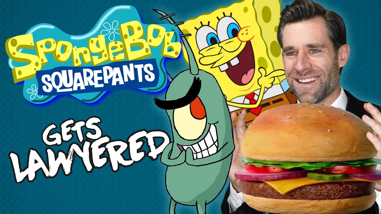 Fearing that he will lose the case, Mr. Krabs hires a lawyer named Richard A. Bottomfeeder, who tells him that he will not charge him anything unless they win and that they will counter-sue Plankton for everything he owns. Later, in Mr. Krabs' office, SpongeBob wants to read his testimony speech to Mr. Krabs. However, Mr. Krabs declines SpongeBob's testimony and tells him that he could be more of a liability than an asset. Unfortunately, as they prepare to leave for the court hearing, Richard slips and falls, breaking his back. He gives SpongeBob his briefcase, saying that they only need what's inside the briefcase to win the case. SpongeBob takes Richard's suit and arrives late to the trial, dubbing himself "SpongeBob LawyerPants" to Judge Stickleback.